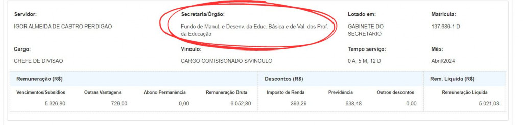 A Prefeitura de Manaus não respondeu as perguntas sobre a situação funcional de Igor Almeida, que recebe dinheiro do Fundeb sem cumprir expediente e tem domicílio eleitoral em Itacoatiara. O salário de um professor da Semed que trabalha 20 horas semanais é de R$ 2.448,47. No ano passado, David Almeida deixou de pagar o bônus do Fundeb, alegando que o recurso não sobrou para o rateio.