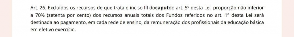 O Fundeb é um fundo especial composto por recursos provenientes de impostos e transferências dos Estados, Distrito Federal e Municípios, vinculado a servidores da educação, conforme estabelecido nos Artigos 212 e 212-A da Constituição Federal, regulamentado pela Lei nº 14.113, de 25 de dezembro de 2020. O recurso não deve ser direcionado à agentes da segurança pública ou de outras áreas da administração pública.