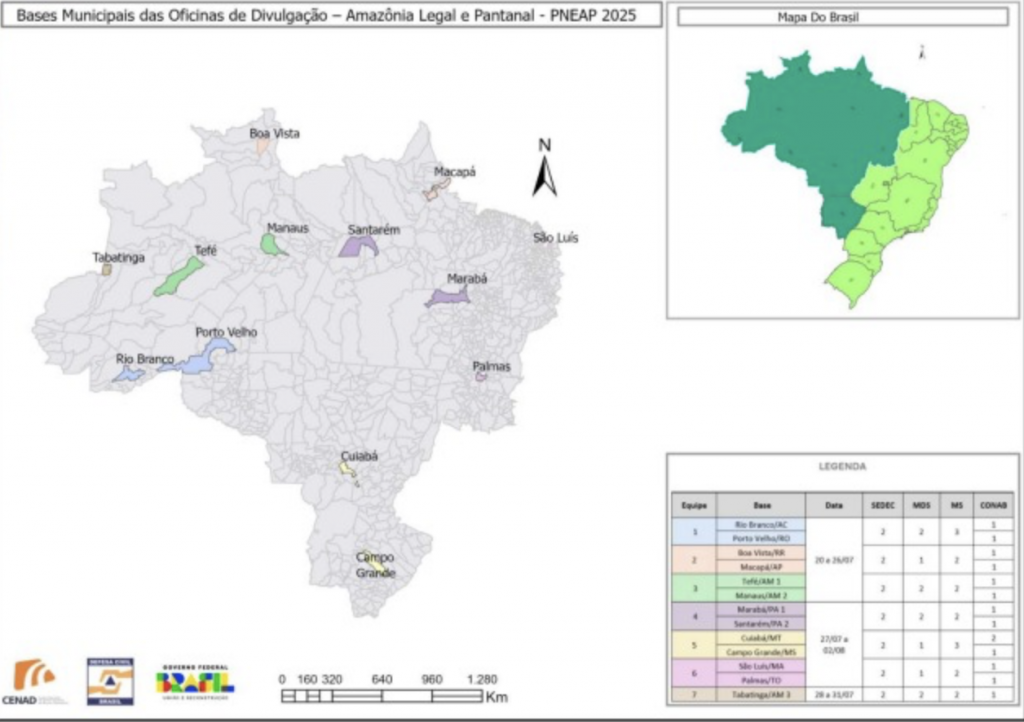 Conforme informações do MIDR, com exceção do Amazonas, que contará com três bases, e do Pará, com duas, os demais Estados terão uma base temporária em cada capital, com o aproveitamento das estruturas estaduais ou federais que já existem.