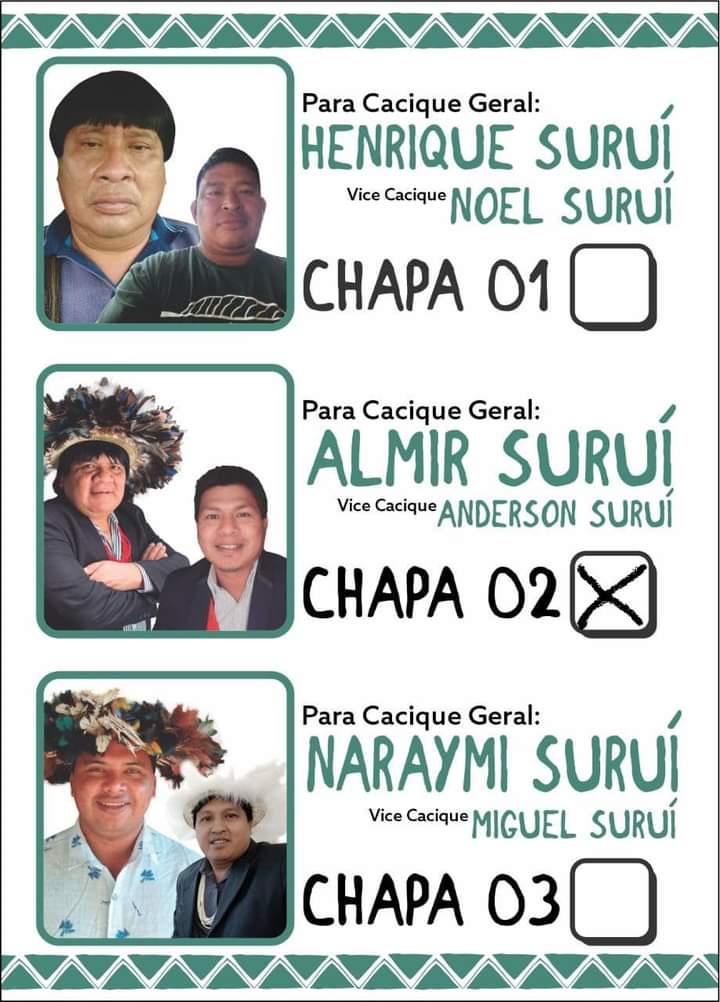 No modelo de gestão indígena dos Paiter Suruí, a chapa vencedora fica no poder por dois anos, assumindo em janeiro de 2022 e permanecendo até 2024, ano em que a nova eleição acontecerá.