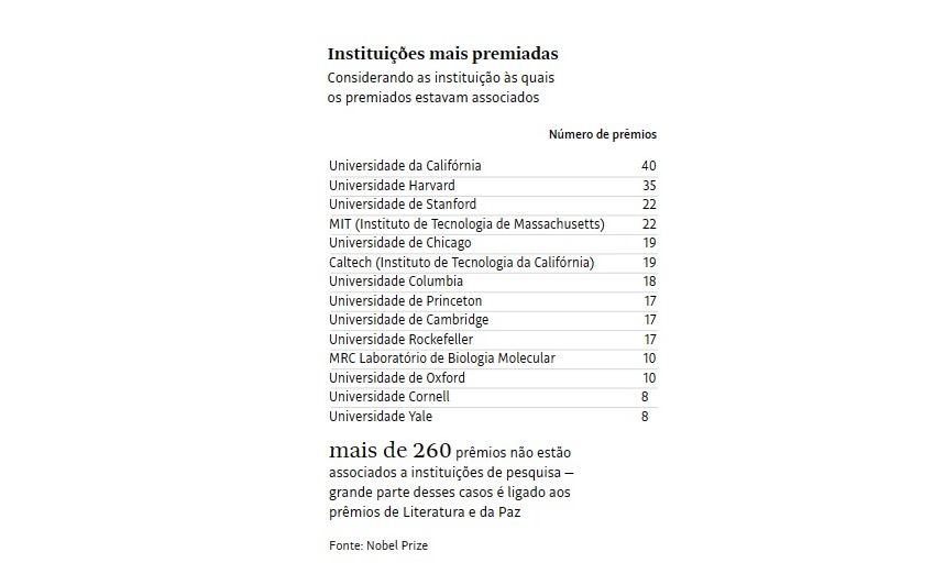 “Essa preocupação [sobre a quantidade de mulheres premiadas] estava dentro da fundação [do Nobel]“, diz Helena Nader, presidente da Academia Brasileira de Ciências (ABC). “É uma realidade, mas não é por acaso. Tudo isso é fruto da sociedade. A sociedade percebeu que não pode continuar assim.”