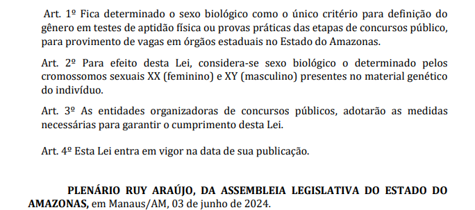 “Ao estabelecer essa medida, o Estado do Amazonas reforça seu compromisso com a transparência, a ética e a legalidade em seus concursos e processos seletivos, promovendo um ambiente mais justo e igualitário para seus candidatos“, propõe a parlamentar bolsonarista.