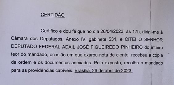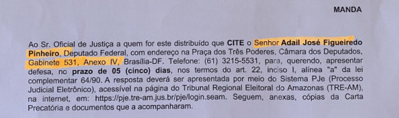 Adail foi notificado, de acordo com os autos do processo 0602537-31.2022.6.04.0000 aos quais a REVISTA CENARIUM teve acesso, no último dia 26 de abril, em Brasília. O partido pede a decretação de nulidade e da anulação dos votos obtidos, por Adail Filho, na última eleição, além de aplicação de multa, decretação da inegibilidade pela prática de abuso do poder econômico, quebra do sigilo bancário e pericia da Polícia Federal em todas as contas do parlamentar.