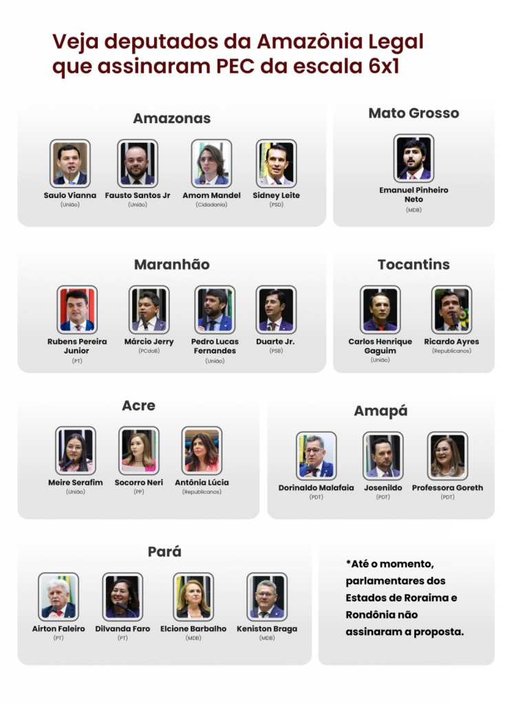 Deputados da Amazônia Legal assinam PEC da escala 6×1; veja quem são