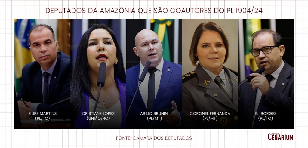 Inicialmente foram seis parlamentares da região que assinaram a coautoria da proposta. Depois da repercussão negativa, a deputada Renilce Nicodemos (MDB-PA) retirou-se como coautora. Sem a parlamentar paraense, são eles: Filipe Martins (PL/TO); Cristiane Lopes (União Brasil/RO); Abilio Brunini (PL/MT); Coronel Fernanda (PL/MT); e Eli Borges (PL/TO).
