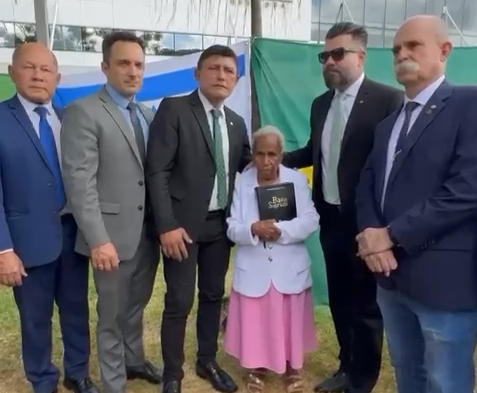 Éder Mauro também fez menção à presença simbólica da religiosa conhecida como Irmã Ilda: “Conosco, com certeza, a nossa grande e simbólica irmã Ilda, que o sistema podre classifica como uma grande terrorista”.