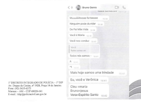 O inquérito contém mais de 2 mil páginas constando depoimentos de pessoas próximas dos investigados e familiares, prints de conversas entre os suspeitos, registros de transferências de contas bancárias e outras provas que confirmam a tese de investigação da PC-AM sobre a fundação da seita religiosa para fornecer e induzir pessoas a utilizar drogas psicotrópicas.
