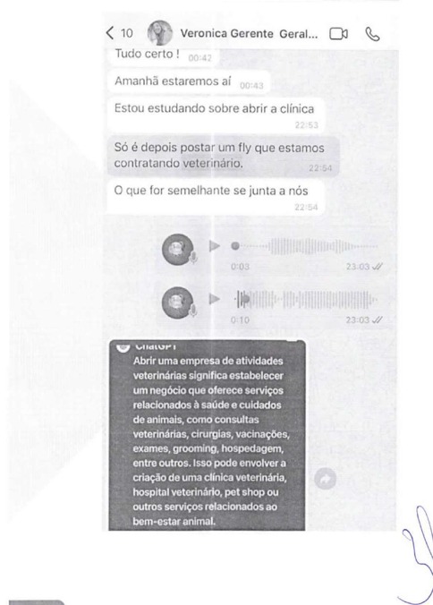 A família Cardoso tinha um desejo de abrir uma clinica veterinária para ter acesso mais fácil aos medicamentos utilizados em animais. Em conversa entre Verônica da Costa Seixas, gerente do salão de beleza e a maquiadora Clauidele Santos, a gerente utiliza um programa de Inteligência Artificial (IA) que confirma a possibilidade de compra de medicamentos de uso veterinários através de um CNPJ especifico da área.