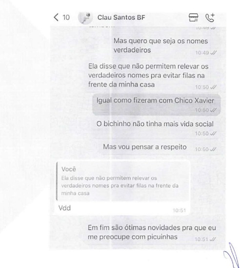 Em conversas mantidas com a maquiadora do salão de beleza Belle Femme, Claudiele Santos da Silva, apontam que o grupo pretendia fazer atendimentos assim como Chico Xavier. Na há informações de quem seria o autor da mensagem.