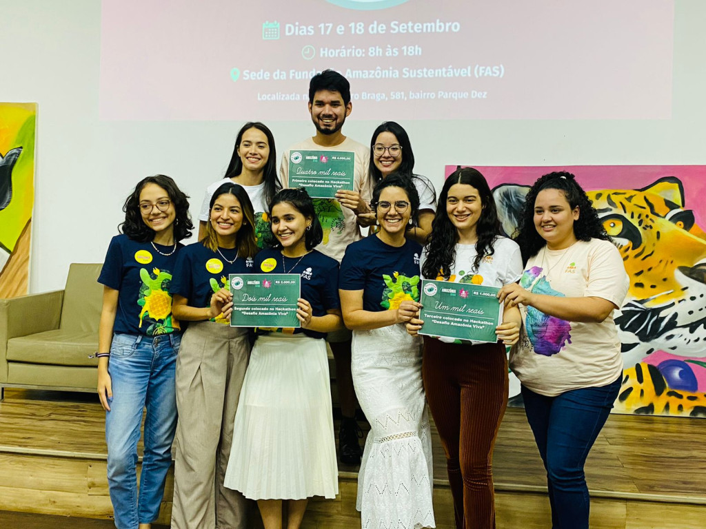 MANAUS – A Fundação Amazônia Sustentável (FAS) realizou neste domingo, 18, na sede da instituição, em Manaus, o encerramento do hackathon “Desafio Amazônia Viva“, que premiou estudantes de Comunicação que produziram materiais de mídias para as redes sociais com temáticas da região amazônica. A equipe Aruanas, formada por três estudantes de Jornalismo, foi a vencedora e levou para casa o prêmio de R$ 4 mil.