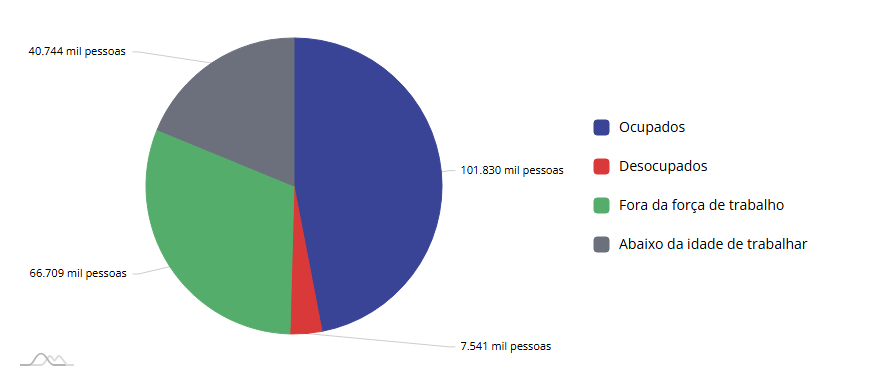- Fora da força de trabalho: 66.709 mil pessoas, o segundo maior grupo, composto por pessoas que não estão buscando emprego.