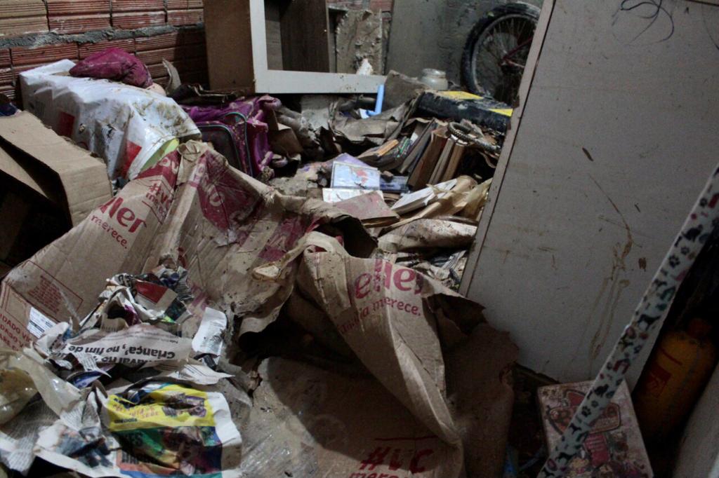 A Defesa Civil condenou a residência de Ana Lúcia levando ela, o esposo, os dois filhos e a neta a dormirem em uma igreja, na última noite dessa segunda-feira, 17. As roupas cobertas de barro que a família lavava na frente da casa condenada quando a CENARIUM esteve no local foram todas perdidas.