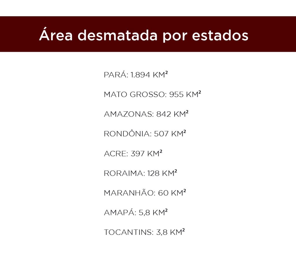 Nesse período, o sistema Deter do Inpe emitiu mais de 22 mil alertas de áreas sob risco de desmatamento. Pará, Mato Grosso e Amazonas lideram, com mais de 3 mil quilômetros quadrados, juntos.