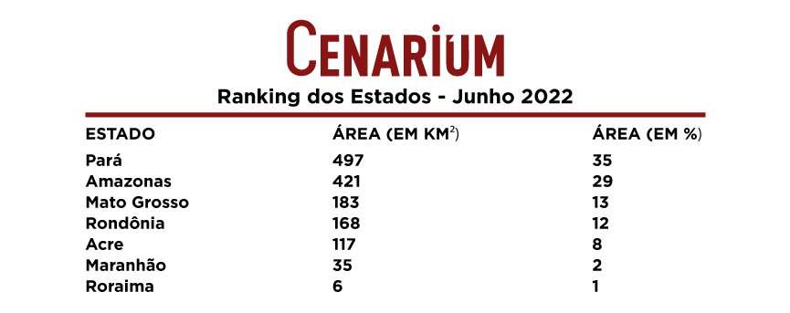 Abaixo do Pará, estão o Amazonas, com 29% da destruição e, Mato Grosso, com 13%. Este último vem se mantendo desde outubro de 2021 entre os três Estados que mais desmatam a Amazônia, de acordo com os levantamentos do instituto. Amapá e Tocantins não apareceram na lista.