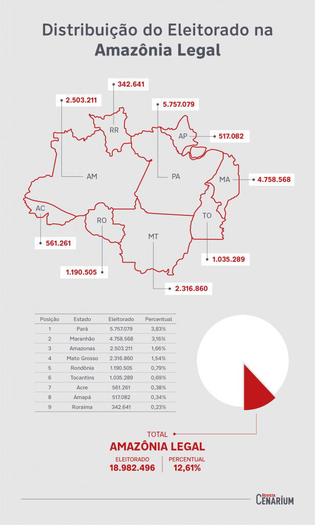 Com 10,5 milhões de eleitores, sendo um terço sob responsabilidade dos Tribunais Regionais Eleitorais (TREs) com maiores densidades eleitorais dos nove Estados da Amazônia Legal, o Pará lidera com 5,7 milhões de votantes, seguido do Amazonas com 2,5 milhões e Mato Grosso 2,3 milhões, respectivamente em primeiro, segundo e quarto lugar no ranking atualizado pelo TSE em junho deste ano.