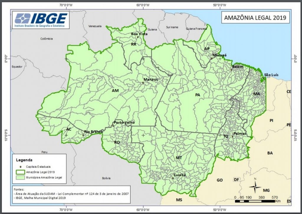 A Amazônia abrange, no Brasil, nove Estados, são eles: Amazonas, Acre, Amapá, Rondônia, Roraima, Pará, Mato Grosso, Maranhão e Tocantins; cerca de 59% de todo o território brasileiro, sendo 67% de todas as florestas tropicais do mundo, mais de 6.700 mil quilômetros quadrados de floresta. Além do Brasil, a Amazônia está presente em outros países da América do Sul como: Bolívia, Peru, Colômbia, Venezuela, Suriname, Guiana e Guiana Francesa.