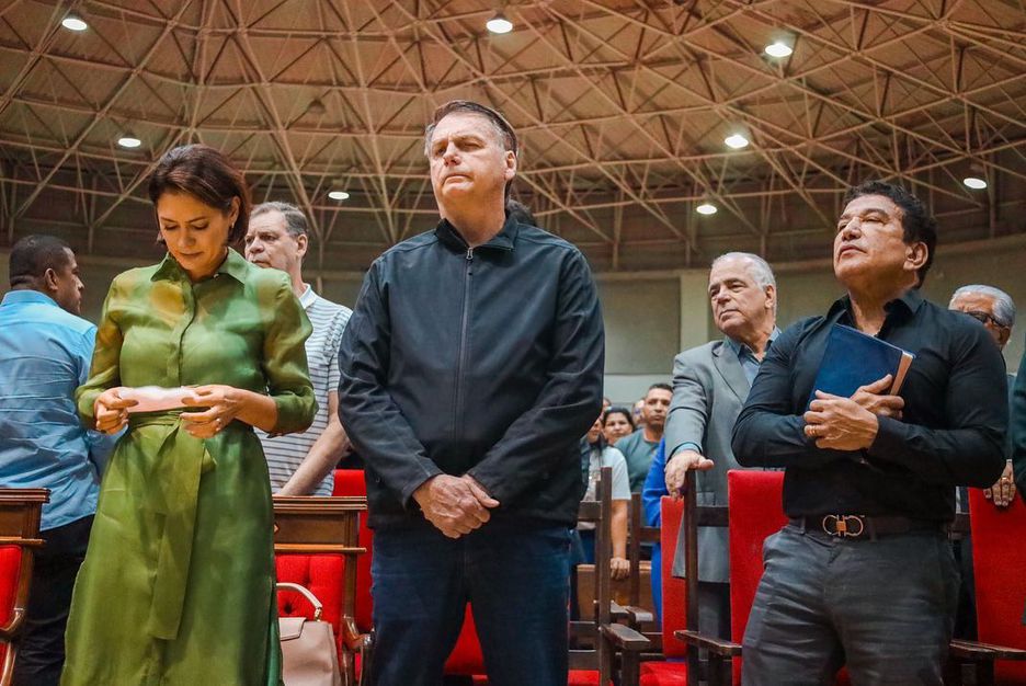 Diante de delação de Mauro Cid, Michelle Bolsonaro chora em culto