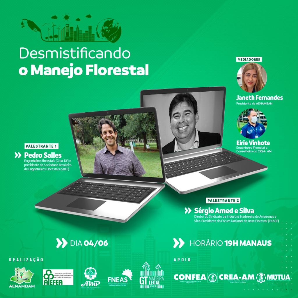 MANAUS – Especialistas da indústria madeireira e da engenharia florestal palestram nesta sexta-feira, 4, sobre o manejo florestal. O objetivo é desmistificar a atividade e levar ao debate da sociedade os benefícios ambientais, econômicos e sociais que o processo sustentável promove. O evento é uma iniciativa da Associação dos Engenheiros Ambientais do Amazonas e será transmitido, a partir das 19h, horário de Manaus, nas redes sociais.