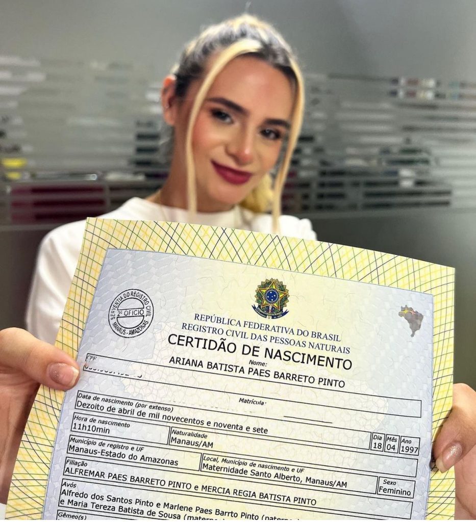 A influenciadora, que em janeiro deste ano conseguiu trocar o nome na Certidão de Nascimento e foi oficialmente reconhecida como Ariana Batista Paes Barreto Pinto, comenta sobre o sentimento de participar do concurso. “Até agora eu não consigo nem te explicar direito o que eu estou sentindo, porque é incrível e eu fico muito feliz que eles abriram o espaço e deram essa oportunidade para todos os tipos de mulheres. Porque é isso. O Brasil é isso. É diversidade, são vários tipos de corpos e é importante todo mundo se sentir representado”.