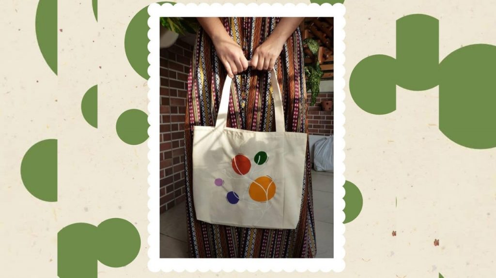 “Utilizamos tecido de algodão cru, pois tem mais resistência, traz uma estrutura simples e natural, não tem química e minha mãe costura todas com muito carinho. Com relação à pintura, procuro imprimir um olhar diferente inspirado no meu dia a dia, passo o esboço para um caderninho e depois a arte acontece”, explica Izaída.