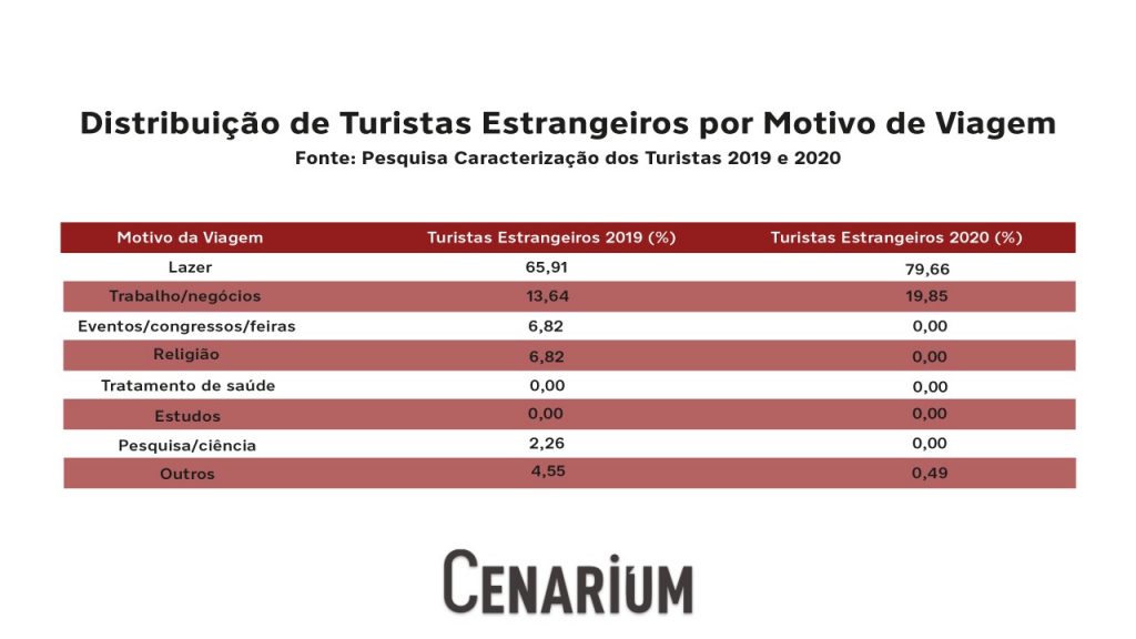 A pesquisa foi realizada no Aeroporto Internacional Eduardo Gomes e indicou que o Amazonas recebeu cerca de 13% mais turistas estrangeiros buscando o lazer em 2020 do que em 2019. Outro motivo que liderou o ranking em 2020 foi viagem a trabalho e negócios. Entre as pessoas entrevistadas, nenhuma apontou que chegou ao Estado motivada por eventos/congressos/feiras, religião, tratamento de saúde, estudos ou pesquisa/ciência.