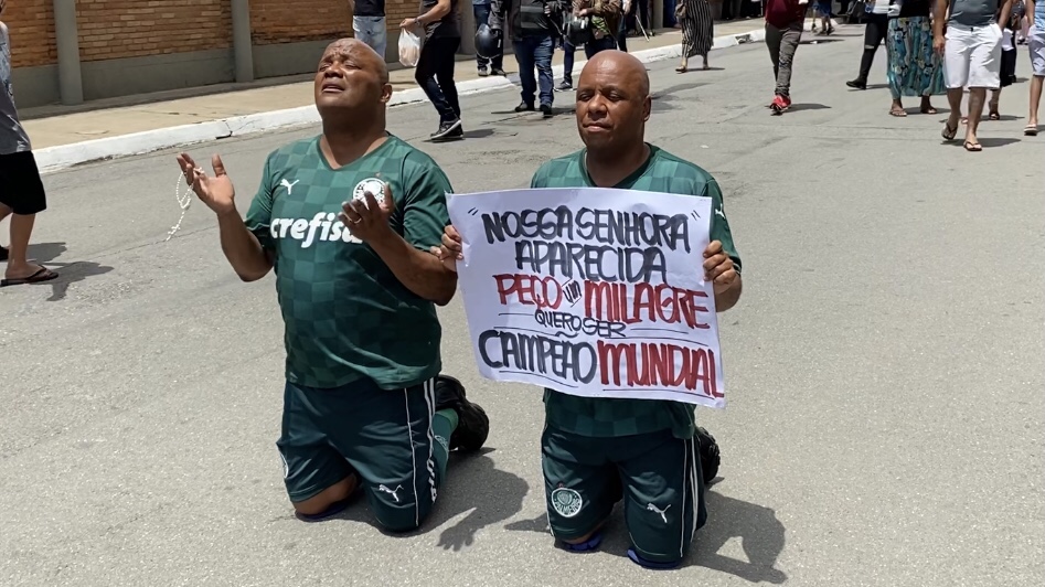 Mas não é só por saúde que os peregrinos suplicam. O casal Maguila Júnior e Maycon Simões que vivem em Santos, São Paulo, clamam para que o Palmeiras, time do coração deles, alcance o tão esperado campeonato mundial. Dos times paulistas apenas o alviverde nunca venceu o campeonato Mundial de Clubes disputado no Japão.