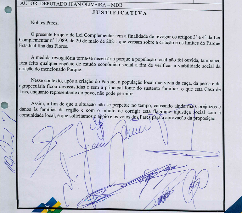 “Na tramitação na Assembleia Legislativa, os cortes subiram para cerca de 220 mil hectares e foram estabelecidos na lei 1.089/2021, que o senhor sancionou contrariando os pareceres técnicos do seu próprio governo”, expõe o trecho, se referindo às orientações que Marcos Rocha recebeu, por exemplo, da Procuradoria-Geral do Estado (PGE-RO), sugerindo o veto.