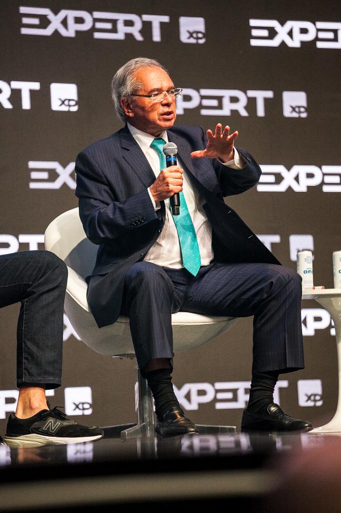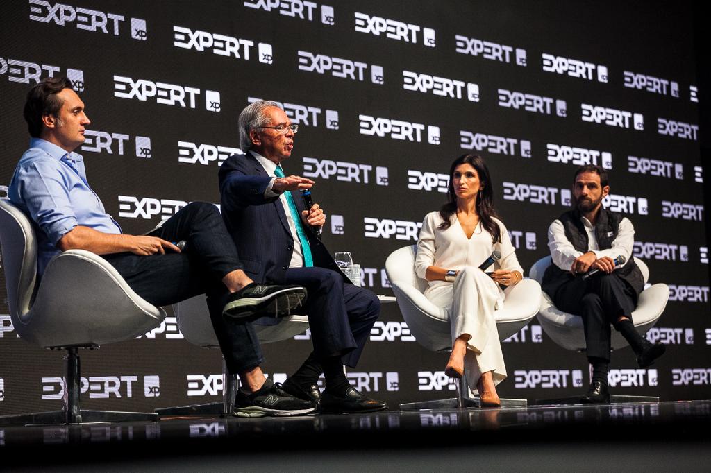 A palestra de Paulo Guedes foi mediada pela jornalista Junia Gama, o sócio-diretor da XP Investimentos Rafael Furlanetti e o economista-chefe da XP Investimentos, Caio Megale.