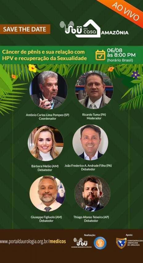 A transmissão ocorrerá por meio do site www.portaldaurologia.org.br/medicos , ao vivo. A atividade tem como tema “O câncer de pênis, sua relação com o HPV e a recuperação da sexualidade”. A escolha pelo ambiente online se deu por medida de segurança, considerando o enfrentamento à pandemia do novo Coronavírus.