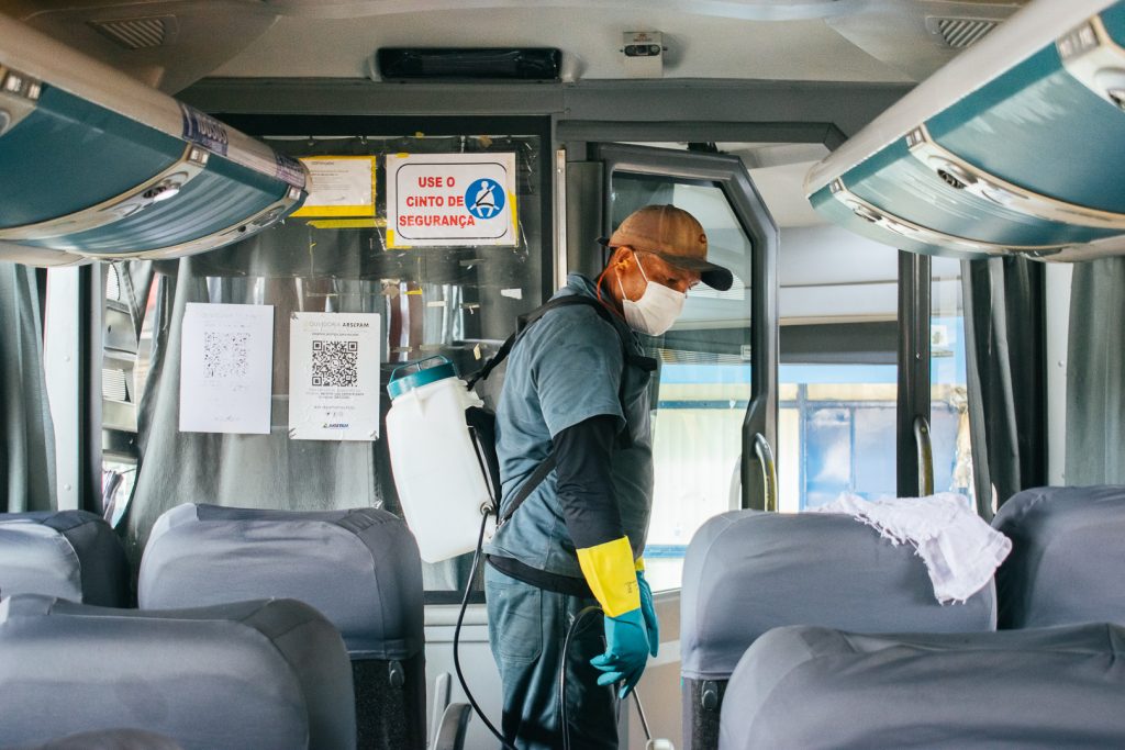 Na limpeza, as equipes de serviços gerais utilizam uma solução a base de álcool 70% e produtos como água e sabão. Além disso, é importante destacar que no interior de cada veículo há um dispensador de álcool em gel (Lei Estadual nº 5.653/2021) e é obrigatório o uso de máscara (Lei Federal n° 14.019/2020) durante todo o percurso da viagem.