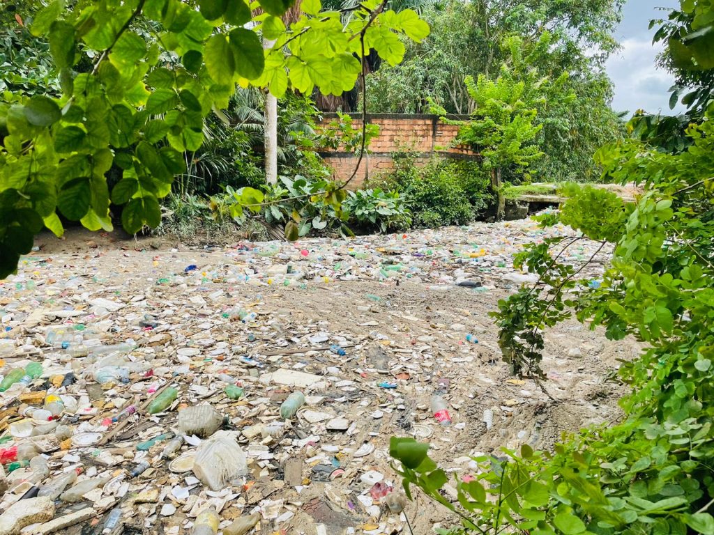 A CENARIUM esteve no local em duas ocasiões. A primeira foi no dia 15 de fevereiro, onde foi constatado que o lixo no trecho do igarapé represou e ficou acumulado. Nessa quarta-feira, 23, de volta ao local, a situação continuava a mesma: a cobertura formada por garrafas PETs e outros materiais irreconhecíveis permanece no local, transformando a paisagem já modificada pelas construções urbanas em um lixão a céu aberto.