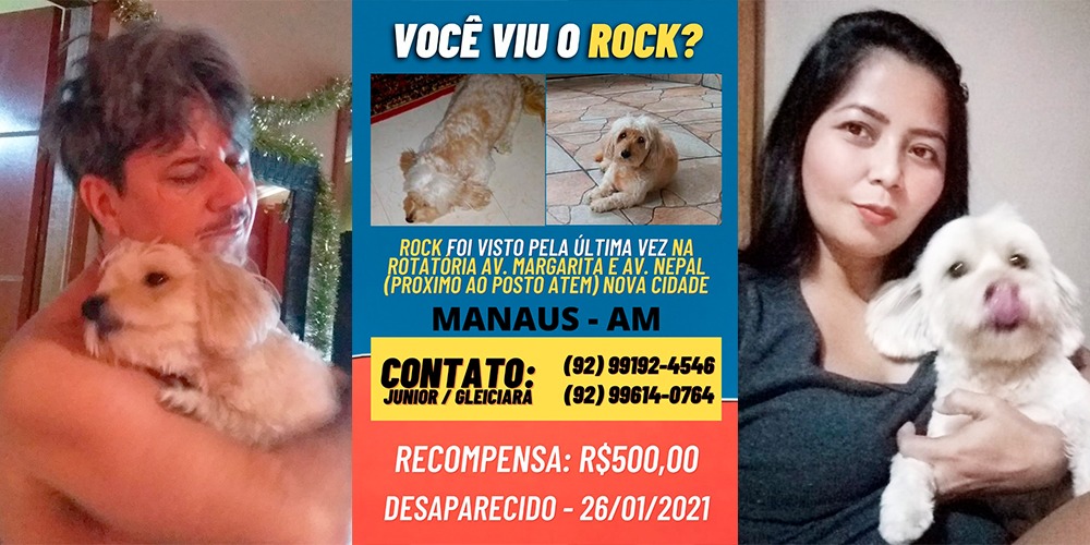 O cãozinho Sem Raça Definida (SRD) fugiu no último dia 26 de janeiro da casa onde Gleiciara mora com o marido, no conjunto Nova Cidade, zona Norte de Manaus. Agora, mesmo desempregada, ela distribui cartazes na região. “Já fizemos panfletagem, colamos cartazes nos postes [de iluminação], mercadinhos, paradas de ônibus, mesmo assim seguimos sem notícias dele. Estamos desesperados sem notícias, têm dias que a gente não dorme direito”, contou.
