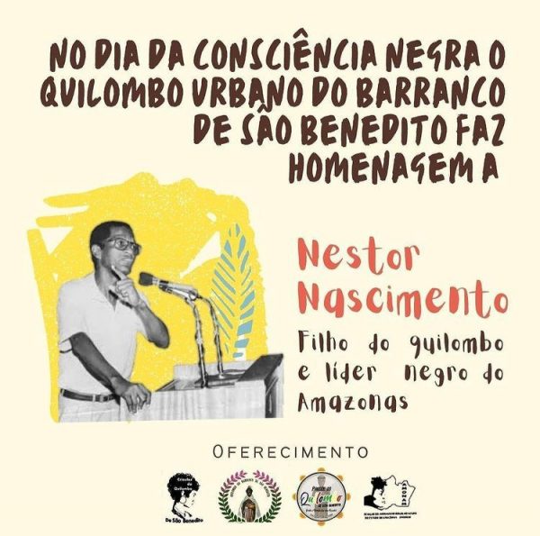MANAUS – Para celebrar o Dia da Consciência Negra, no próximo sábado, 20, o Quilombo Urbano do Barranco de São Benedito, o segundo quilombo urbano do Brasil, localizado na Rua Japurá, na Praça 14 de Manaus, Zona Sul de Manaus, vai homenagear o filho do quilombo e líder negro do Amazonas Nestor Nascimento.