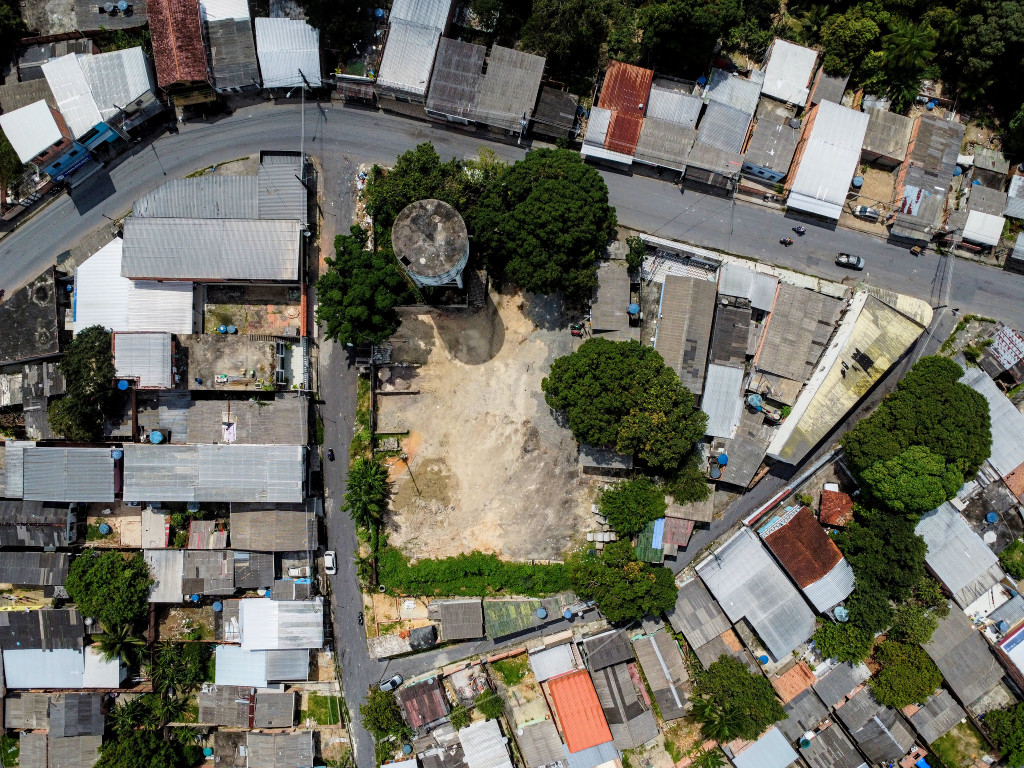 No bairro Cidade de Deus, na Zona Norte de Manaus, maquinários estão cobertos por vegetação e enferrujados, o que indica que estão parados no local há pelo menos um ano. O tempo de abandono foi confirmado pelos moradores.