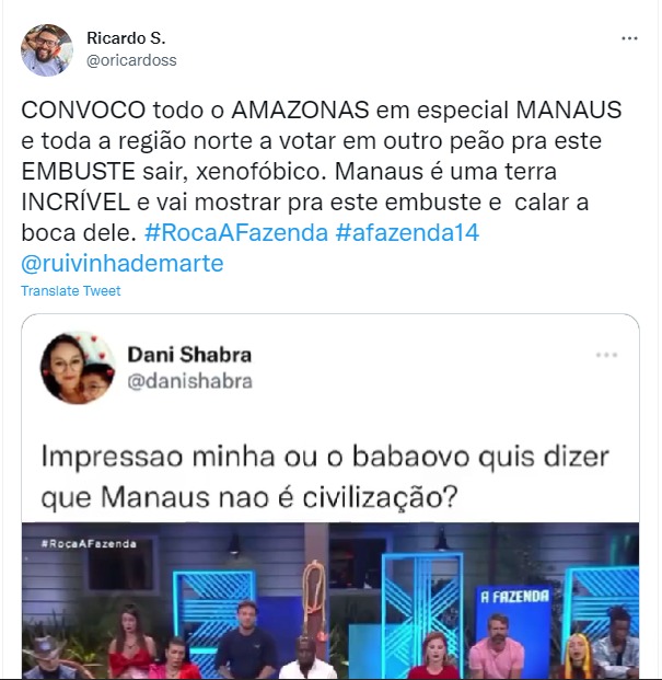 Nas redes sociais, manauaras que assistiam ao reality show reagiram às falas de Vini e após a confirmação do participante na “roça”, mutirões foram montados para garantir sua eliminação. “Manaus é uma terra incrível e vai mostrar para esse *** e calar a boca dele”, escreveu um telespectador.