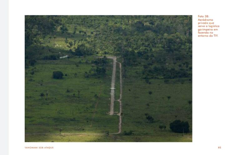 A diminuição da fiscalização na região e uso de pistas que, anteriormente, eram exclusivas para o Distrito Sanitário, também foram ocupadas pela logística dos exploradores, como por exemplo, a pista do Kayanau, na confluência do Rio Couto de Magalhães com o Mucajaí, afirma o relatório, revelando que, atualmente, há, pelo menos, 12 pistas mapeadas dentro das Terras Indígenas, a serviço do garimpo, sem levar em consideração as pistas do Homoxi e do Apiaú.