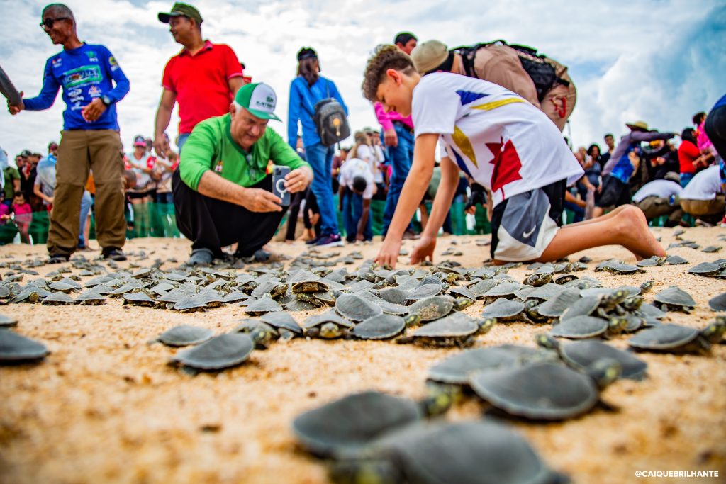 As tartarugas foram entregues à natureza, agora em dezembro, mas o trabalho começou bem antes, desde a desova das fêmeas adultas, que neste ano ocorreu em outubro. Dessa vez, os voluntários cuidaram de 120 mil ninhos de Tracajás e Tartarugas da Amazônia.