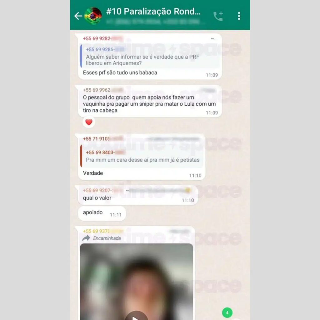 As mensagens surgiram em um grupo chamado ‘#10 Paralisação Rondônia’. O crime seria financiado por meio de uma vaquinha virtual.