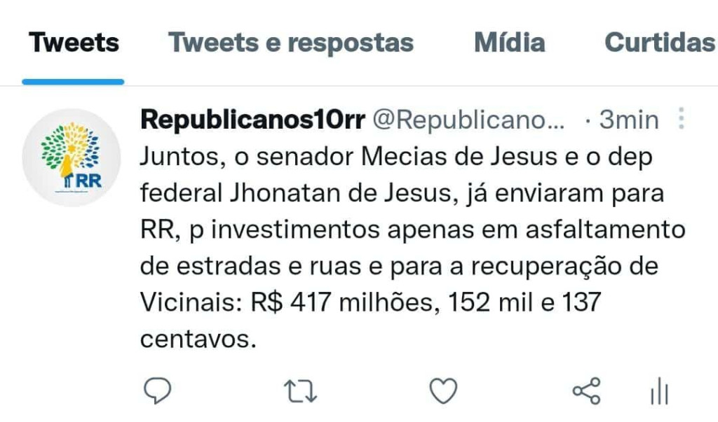 Em nota, a assessoria do senador Mecias de Jesus informou que “não são verdadeiras as declarações atribuídas ao superintendente do Dnit em Roraima, de que a bancada de Roraima não destinou recursos para asfaltamento e recuperação de estradas. Apenas o senador Mecias de Jesus (Republicanos) enviou, a partir de 2019, R$ 219 milhões para asfaltamento e recuperação de estradas” (sic), diz a nota.