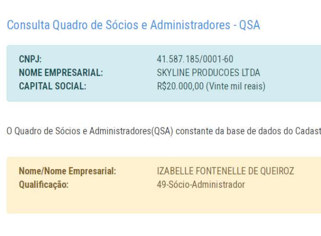 Outro fato que chama atenção é que a Skyline Produções Ltda. está localizada numa sala comercial na Avenida Álvaro Maia, Nº 2357, mesmo endereço da empresa L O F Fenix, pertencente a Lidiane Fontenelle – mãe de Izabelle e sogra de David – e já recebeu mais de R$ 120 mil de uma construtora que possui contratos na montante de R$ 65 milhões com a Prefeitura de Manaus.