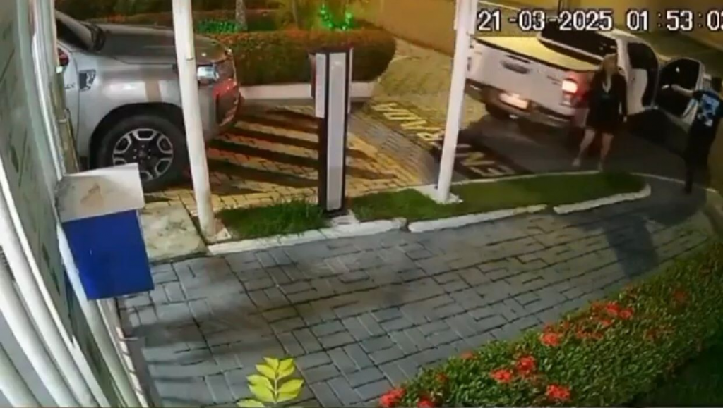 Uma câmera de segurança do circuito interno do condomínio mostra o momento em que as vítimas saíam do local em um veículo picape branca. O suspeito dirigia uma picape cinza, logo atrás. As imagens mostram que os veículos estavam posicionados na saída do condomínio no momento em que o suspeito saiu do carro com uma arma de fogo em punho e a apontou em direção ao veículo onde as vítimas da tentativa de homicídio estavam.