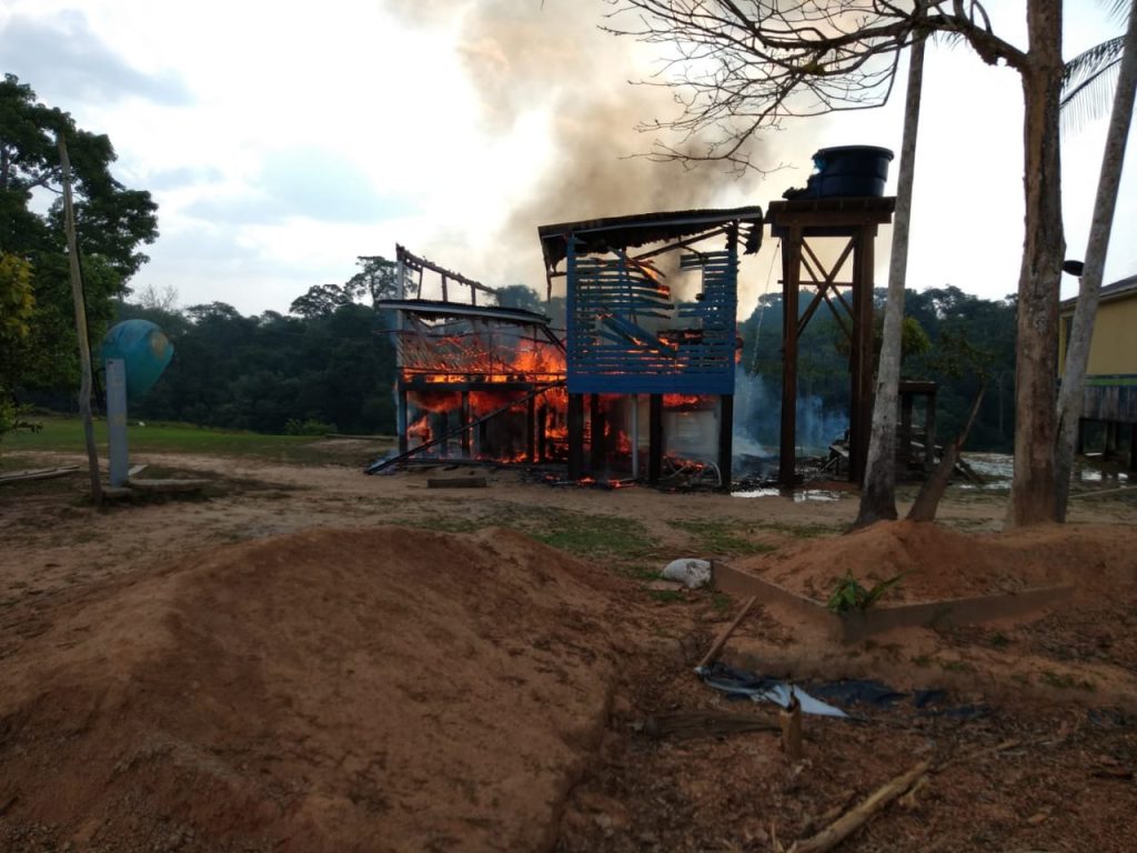 Em vídeo gravado pelos próprios moradores da comunidade, é possível ver a casa sendo consumida pelas chamas que também comprometeu a fiação elétrica e a escola que atende os alunos do vilarejo.
