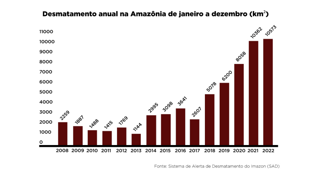 Amazon lost area equivalent to seven capital cities during Bolsonaro’s administration; deforestation in 2022 was the worst in 15 years