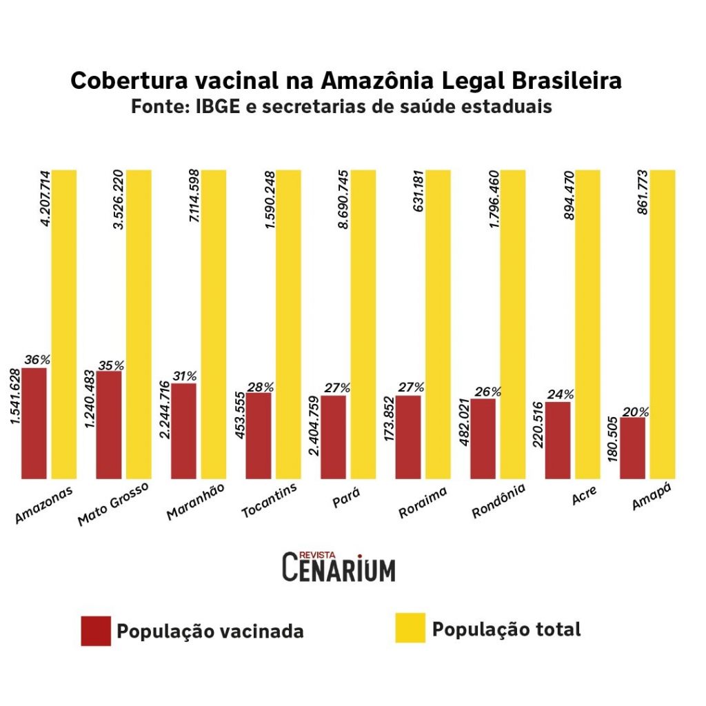 MANAUS – O Amazonas, Mato Grosso e o Maranhão estão no topo do ranking da cobertura vacinal contra a Covid-19 entre os Estados da Amazônia Legal, segundo levantamento feito nesta segunda-feira, 14. Com 36% da cobertura vacinal, o Amazonas é o primeiro da lista. Já na “lanterna” está o Amapá, com 20% da cobertura vacinal realizada até o momento.