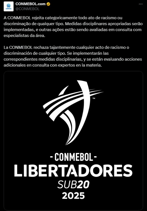 In a statement, Conmebol said it rejects any act of racism or discrimination and pledged to apply appropriate disciplinary measures. “CONMEBOL categorically rejects all acts of racism or discrimination of any kind. Appropriate disciplinary measures will be implemented, and further actions are being evaluated in consultation with specialists in the field,” the statement read.