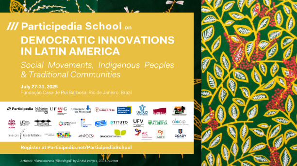 Also included are the Brazilian Association of Graduate Studies and Research in Social Sciences, Democracia en Red, Extituto: Demo.Reset, Observatório de Protocolos Comunitários, Federal University of the State of Rio de Janeiro, People Powered, International IDEA, Democracy International, Federal University of Viçosa, and the Citizen Initiatives Agency.