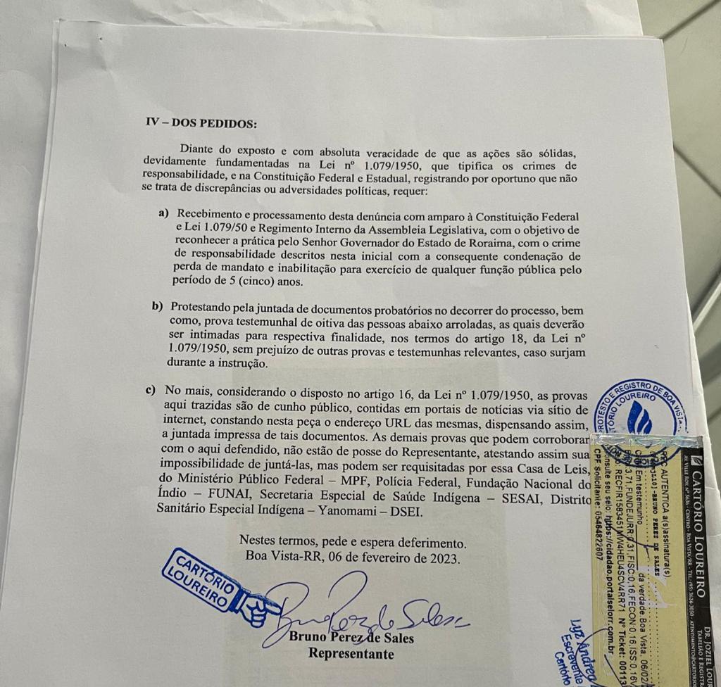 “He never made an operation to contain the clandestine flights, the clandestine runways. On the contrary, he approved laws that allowed mining, and I believe that the deputies need to analyze his omissions and his speeches saying that the indigenous live like animals. He exposed Roraima, negatively, to the world and this should be analyzed as a crime of responsibility”, considered Bruno.