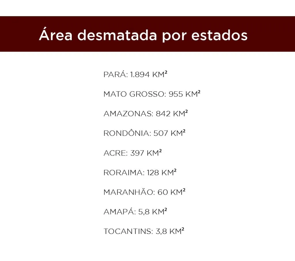 In this period, the Inpe Deter system issued more than 22 thousand alerts of areas under deforestation risk. Pará, Mato Grosso and Amazonas lead the way, with more than 3 thousand square kilometers, together.