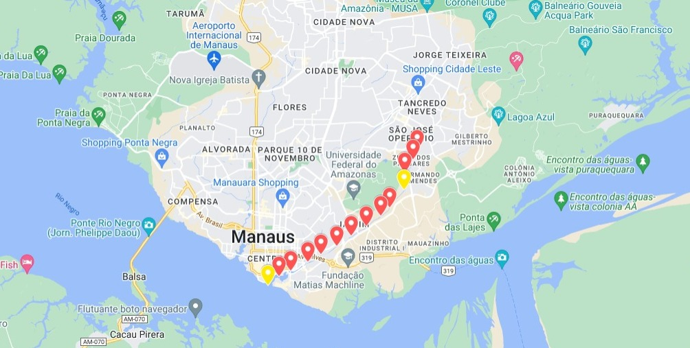 In all, 14 points were collected in the Educandos Basin and 31 in the São Raimundo Basin, considered the main ones in the capital, to generate the Water Quality Index (WQI), with a series of parameters used in international research.