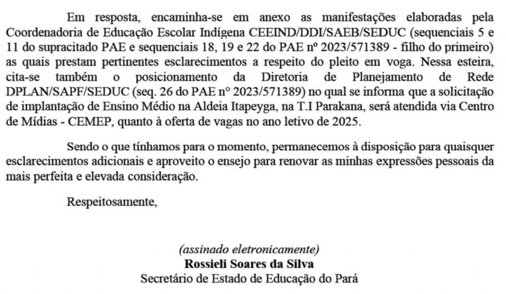 “Documents prove that the secretariat already had a plan, that there were already classes scheduled to start, specifically in the Parakanã Indigenous Territory in Southern Pará, where High School education would begin through distance learning. So, we proved through this document that the governor’s statement is false, considering that at a certain point, the State Government, specifically the Secretariat of Education, did intend to implement distance education in Indigenous lands”, explains the defender.